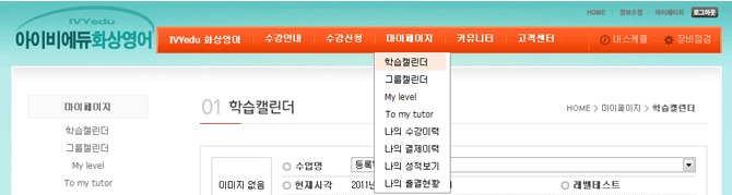 01로그인 후 마이페이지의 서브메뉴인 학습캘린더를 클릭합니다