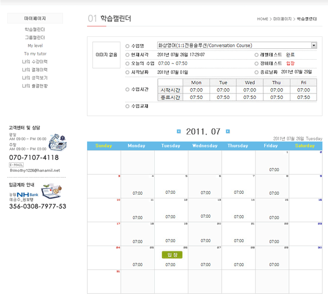 화상영어 수업을 위해서는 화상강의실을 이용하여야 하므로, 레벨테스트 및 수강신청 전에 꼭 화상강의실 입장을
